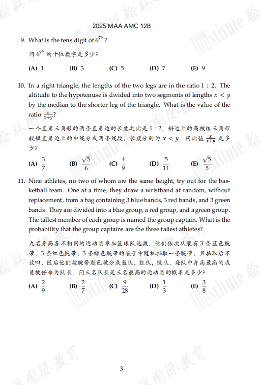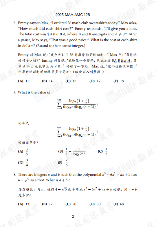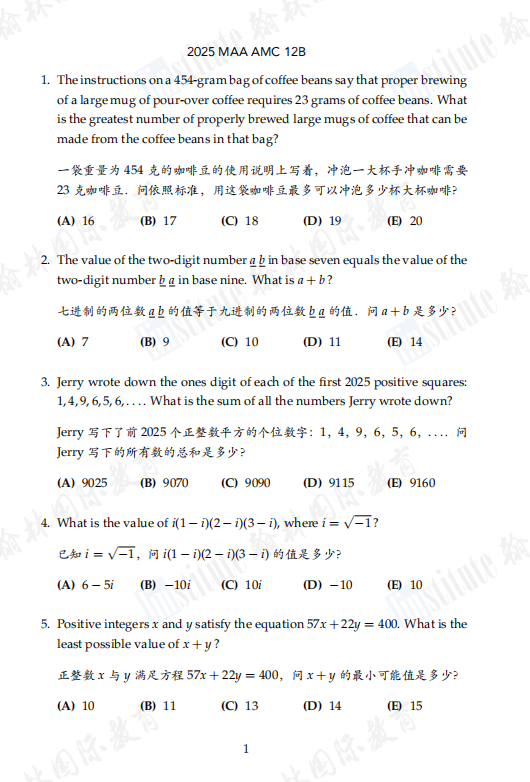 B卷 vs A卷:2025年的AMC10/12 B卷难度与A卷基本持平,未出现明显的“放水”现象。