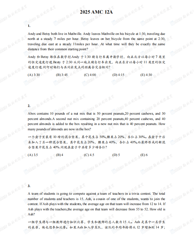 AMC10与AMC12的难度差距缩小,低年级AMC10考生面临更大挑战——压轴题直接对标高年级水平。